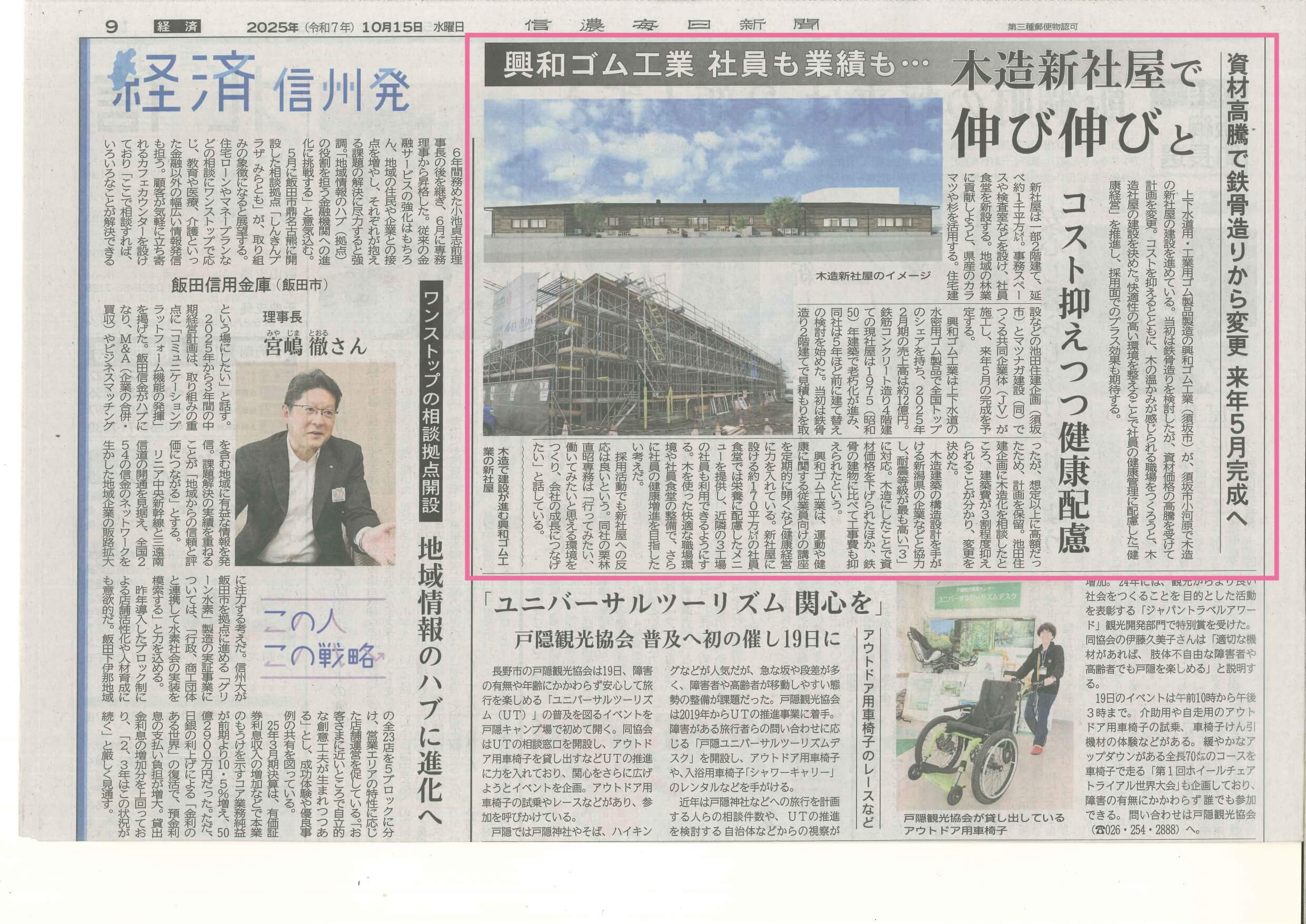 「興和ゴム工業㈱社屋新築工事」が信濃毎日…